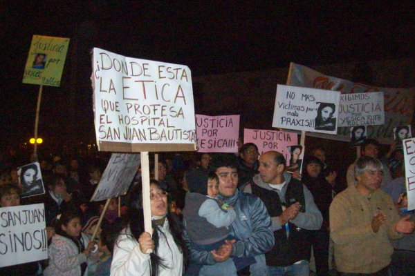 Durante la caminata se señaló como culpables de la muerte de la joven a los profesionales, León, Leiva y Nieto, además se cuestionó a la directora del San Juan Bautista Liliana Fasio.