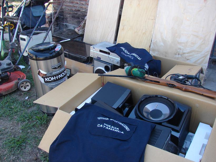 También se encontraron un juego de ollas, 3 puertas placas nuevas, un CPU, 2 teclados, un coche para bebé y una carabina con varias municiones.