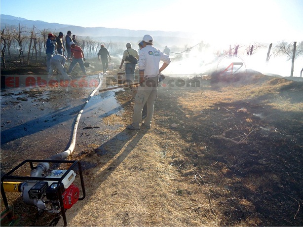 En el lugar trabajaron más de cinco horas para sofocar el fuego, Bomberos Voluntarios, Defensa Civil y Policía. La magnitud del incendio quemó por completo más de cinco hectáreas de viñedos de uvas finas, provocando grandes pérdidas económicas y una vida en peligro.