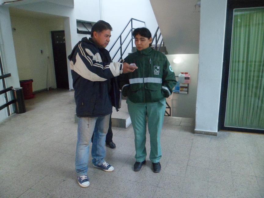 Foto: Momento en que Pachao muestra la filmación a la enfermera.