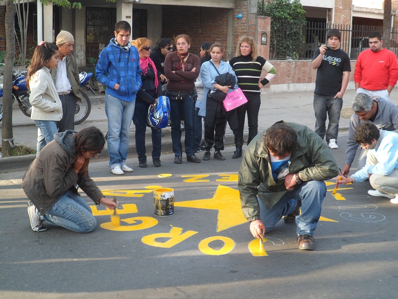 Esta vez, la estrella se pintó en la esquina de las avenidas Belgrano y Los Legisladores, para recordar a Sergio Gutiérrez, que el año pasado perdió la vida en ese lugar.