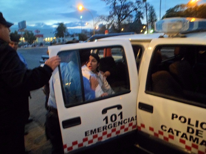 En un hecho confuso, la policía procedió a detener a dos mujeres, en Av. Hipólito Yrigoyen, frente Plaza de la Estación. A pesar de la resistencia que ofrecían, igual fueron trasladadas a dependencia policial.