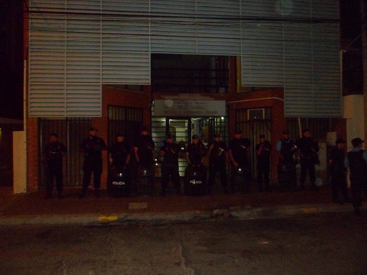 La Policía de la provincia dispuso un fuerte operativo policial, especialmente en la Fiscalía General, luego de los serios disturbios ocasionados el pasado miércoles en la protesta de familiares y amigos del joven brutalmente asesinado Leandro Centeno.