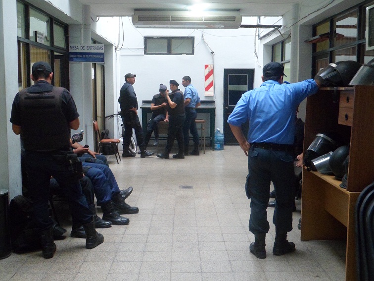 Por estas horas, existe una fuerte custodia policial en la sede judicial esperando por los hermanos Degadino. Recordemos que llegaron desde la provincia vecina de La Rioja hacia Catamarca para comparecer ante la Justicia por el crimen del joven Leandro Centeno.