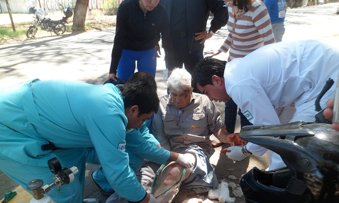 Aparentemente, el conductor de una moto, Eduardo “Chicho” Barros, de 62 años, fue el damnificado cayendo pesadamente a la cinta asfáltica y sufriendo lesiones de consideración en su pierna izquierda, brazos y cabeza a pesar que llevaba casco.