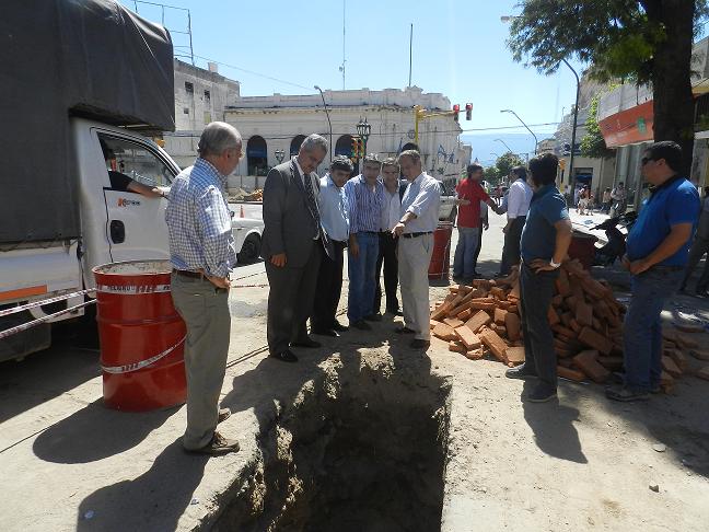 Ambos funcionarios observaron los trabajos que se están realizando por calle San Martín esquina Rivadavia, y que consisten en la construcción de los ductos subterráneos por donde irá el cableado actualmente aéreo que pasan por las ménsulas de las fachadas. En estos días se trabaja por calle Rivadavia y luego la intervención será en calle República.
