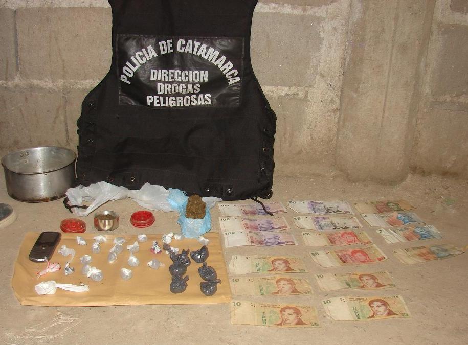 En el lugar se secuestró, Un (01) trozo compactado con veinte (20) gramos de cocaína, Veintiocho (28) envoltorios de Nylon con cien (100) gramos de marihuana, Un trozo compactado con cien (100) gramos de marihuana, Setecientos pesos ($700) discriminados en billetes de baja denominación, Un (01) Triturador manual, utilizado para fraccionar las sustancias y gran cantidad de recortes de nylon.