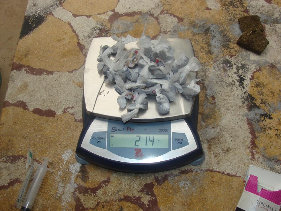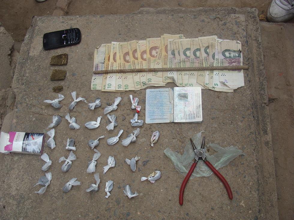 Del lugar, se logró secuestrar 711,1 gramos de Marihuana, fraccionada y en panes; 95,8 gramos de Cocaína, 21,5 gramos de pasta base, Una motocicleta Motomel 110 cc., moto partes y una balanza digital.