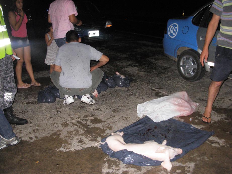 Momentos después, los uniformados requisaron un Citroën C3, conducido por un sujeto de apellido Loza, que llevaba en el baúl 8 cerdos en bolsas de consorcio.
