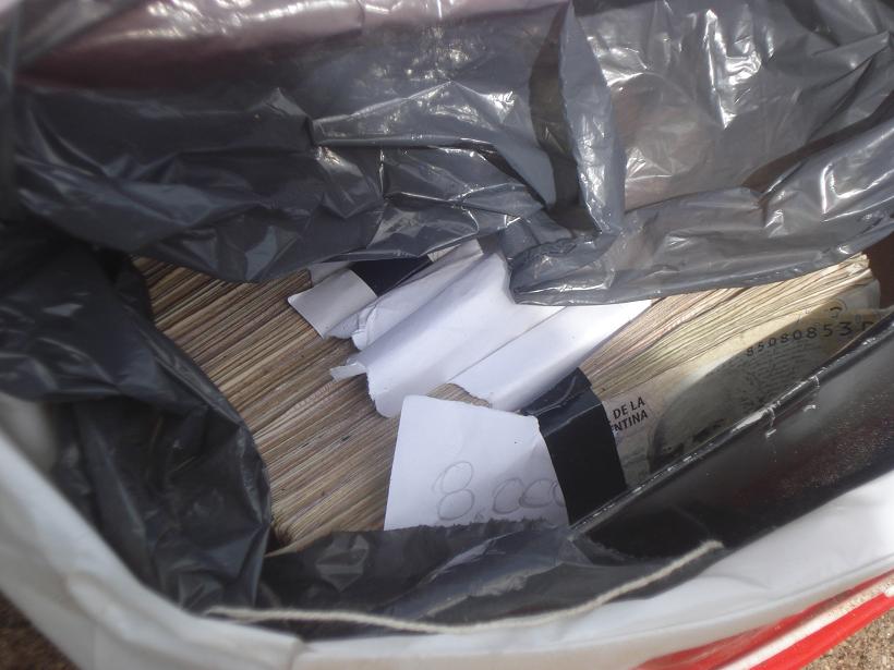 Mas tarde se ordenó otro allanamiento en calle Buenos Aires al 160, donde secuestraron una bolsa que estaba en el fondo de la casa, bajo un montículo de arena que contenía 18 fajos de billetes de cien pesos que totalizaban la suma de $178.000, una motocicleta CG Fan 125cc. que habría sido utilizada para cometer el ilícito, un par de zapatillas y un teléfono celular Motorola de alta gama.
