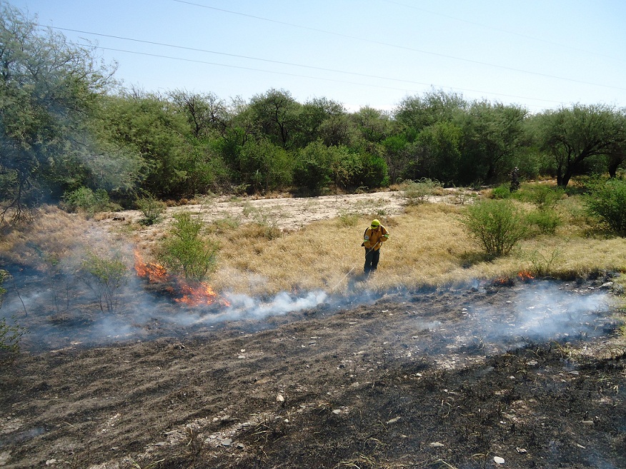 Durante el combate, brigadistas debieron trabajaron con herramientas manuales y mochilas de agua ya que la vegetación afectada fue solo dos hectáreas de pastizal.