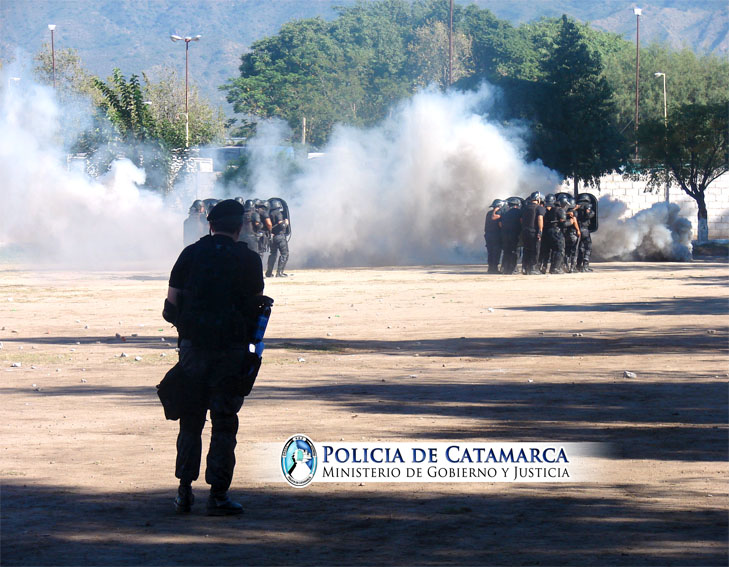 En la mañana de hoy, organizado por las autoridades del IES Policial, en el predio de la Escuela de Cadetes Tte. Gral. Juan Domingo Perón, se llevó a cabo un simulacro de Actuación Policial en Manifestaciones Públicas, el que estuvo a cargo del SubComisario Javier Varela, Jefe del Grupo de Intervención Rápida Capayán (GIR), quien junto a efectivos que integran el mismo mostraron el accionar profesional y capacitación del personal Policial.