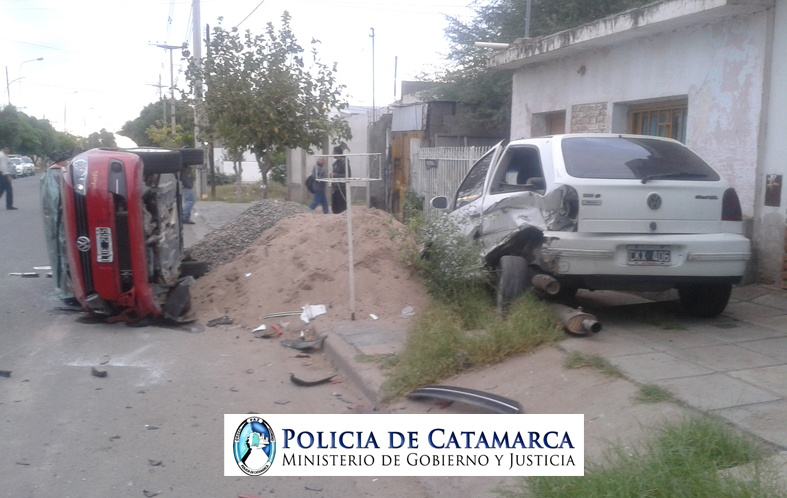 Como producto del fuerte impacto, el primero de los vehículos volcó quedando sobre uno de sus laterales.