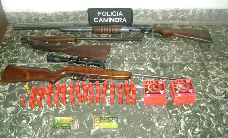Al realizar la requisa del vehículo, se encontró dos escopetas calibre 16, una carabina calibre 22 largo, 71 cartuchos calibre 16, 56 cartuchos calibre 22 largo y dos cartuchos calibre 36.