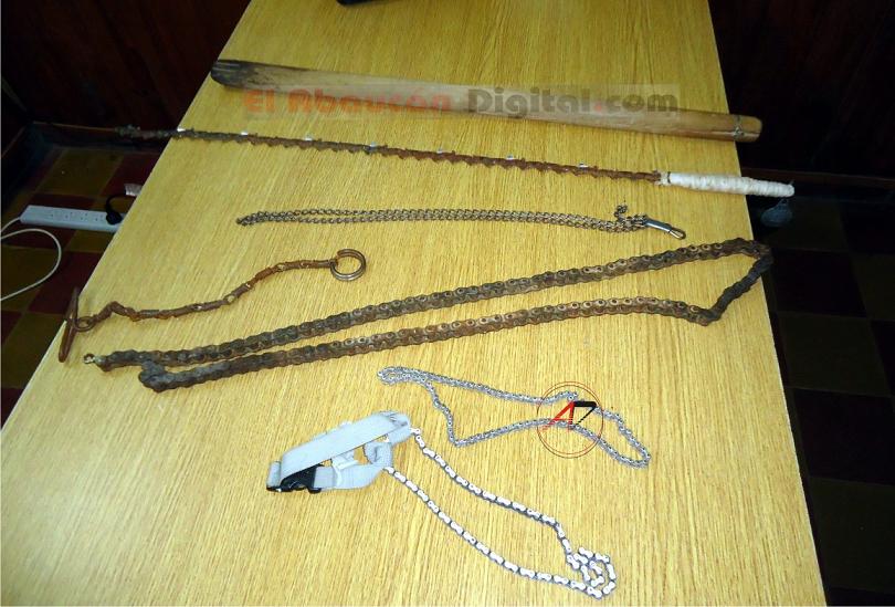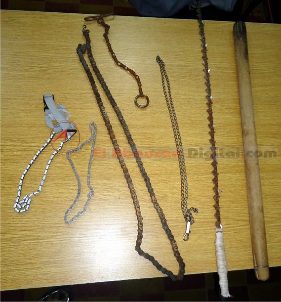 Inmediatamente el personal policial concurre al lugar para constatar lo que allí ocurría y realizar una requisa, donde efectivamente encontraron armas caseras denominadas “tumberas”, consistentes en palos, cadenas de bicicletas, motocicletas y motosierras debidamente confeccionadas con elementos punzantes y cortantes en sus puntas; también facas hechas de tijeras desarmadas para agredir con gravedad en caso de peleas.