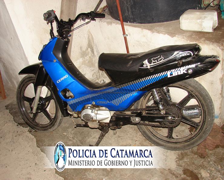 Anoche, a las 21.30 horas, en la esquina de las calles Córdoba y Santa Fe personal de la Comisaría Segunda demoró a un menor de 17 años, quien circulaba en una motocicleta Cerro 110 cc., de color azul con gris, a la que le faltaban las cachas y el faro delantero, y sobre la que obraba un pedido de secuestro.
