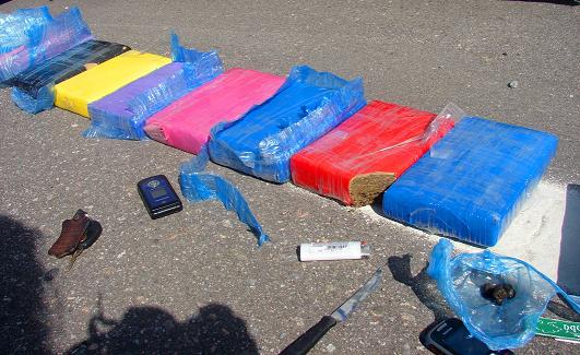 Durante la requisa del vehículo, los uniformados encontraron debajo del asiento trasero, 9 paquetes que contenían una sustancia herbácea compactada, por lo que se convocó a efectivos de la Dirección Drogas Peligrosas, quienes tras efectuar la prueba de campo determinaron que se trataba de Marihuana, en un peso 10,700 Kg. Además se incautó 7 grs. de resina de hachís.
