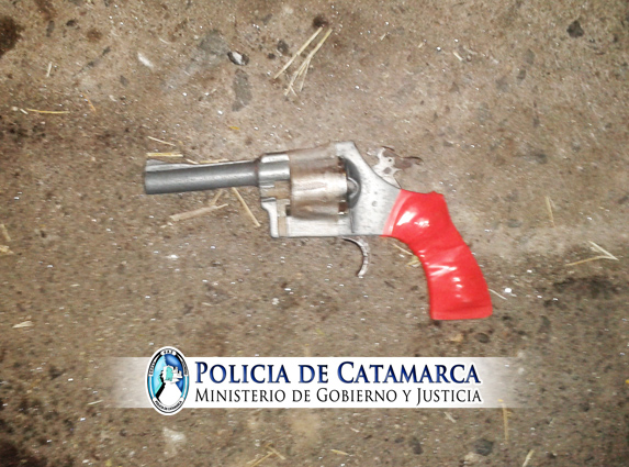 Al requisarlo se le encontró entre sus prendas un arma de fuego revolver calibre 22 largo, con una munición en el tabor con el martillo percutor remontada lista para ser accionada.