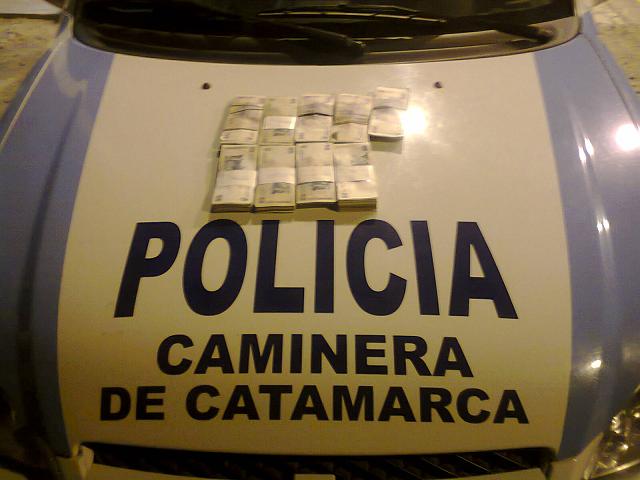 Al proceder a la requisa correspondiente, el personal interviniente encontró oculto en el interior del vehículo la suma de 65 mil pesos, discriminados en billetes de cincuenta 50 y 100 pesos, de los cuales no supieron dar razón de la legítima procedencia.