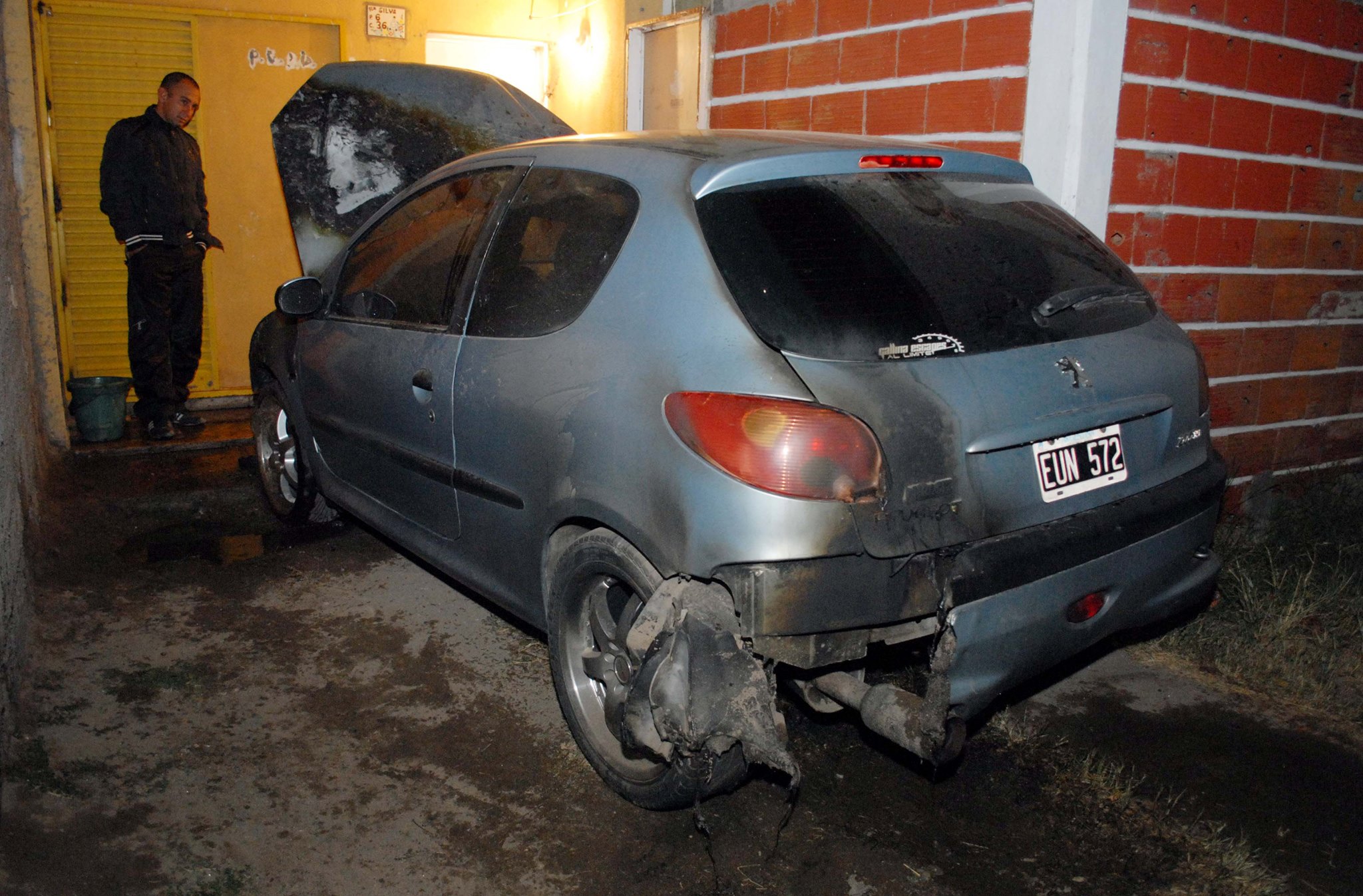 Esta madrugada, a las 2.15 horas, por razones que se tratan de establecer, se incendió un Peugeot 206 (EUN-572), de color gris, que estaba estacionado en la Peatonal 6 de las Mil Viviendas, propiedad de una persona de apellido Rodríguez.