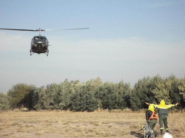 Los brigadistas que se encuentran combatiendo en forma directa en la cabeza del incendio (zona norte) están divididos en 3 cuadrillas, una está trabajando con vaqueanos donde pudieron contener ladera Oeste (Los Ángeles), las otras dos están trabajando ladera Este (Capital) junto al avión hidrante, que ya realizo 3 disparos y se está preparando para salir nuevamente.