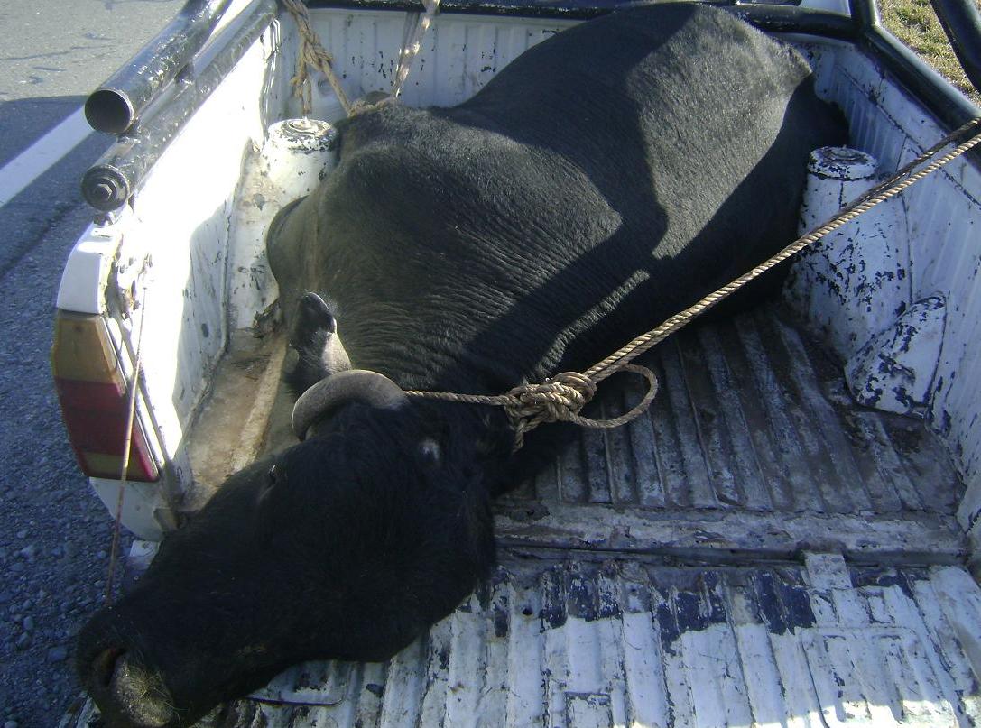 En este vehículo se conducían Miguel Ángel Bazán (36) y Nicolás Bazán (68), quienes transportaban un animal vacuno sin la documentación que acredite su procedencia, sin el permiso para su transporte y no se encontraba en condiciones para su traslado ya que se encontraba maneado y acostado en la caja del vehículo. Se dio intervención a la División Abigeato quien queda a cargo de las actuaciones.