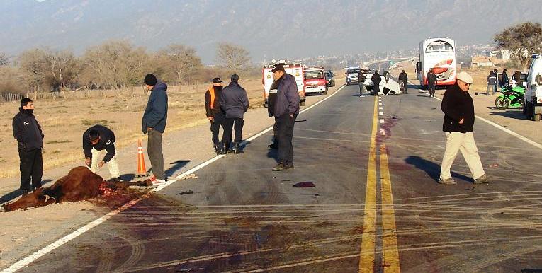 Protagonizado por, una motocicleta Kawasaqui Ninja 250cc, de color verde, conducida por Emilio Marcelo Llanos (42), un automóvil Renault Clío, de color blanco, conducido por Ramón Antonio Saavedra (43), acompañado por Alsina Lobos (39), Silvia Peñaflor (20), Jonathan Peñaflor (15), un automóvil Volkswagen Bora (MKA-478), de color blanco, conducido por Juan José Varela (37) y un colectivo de larga distancia de la Empresa Chevallier (JPO-329), conducido por Cante Alfredo Guasone (61).