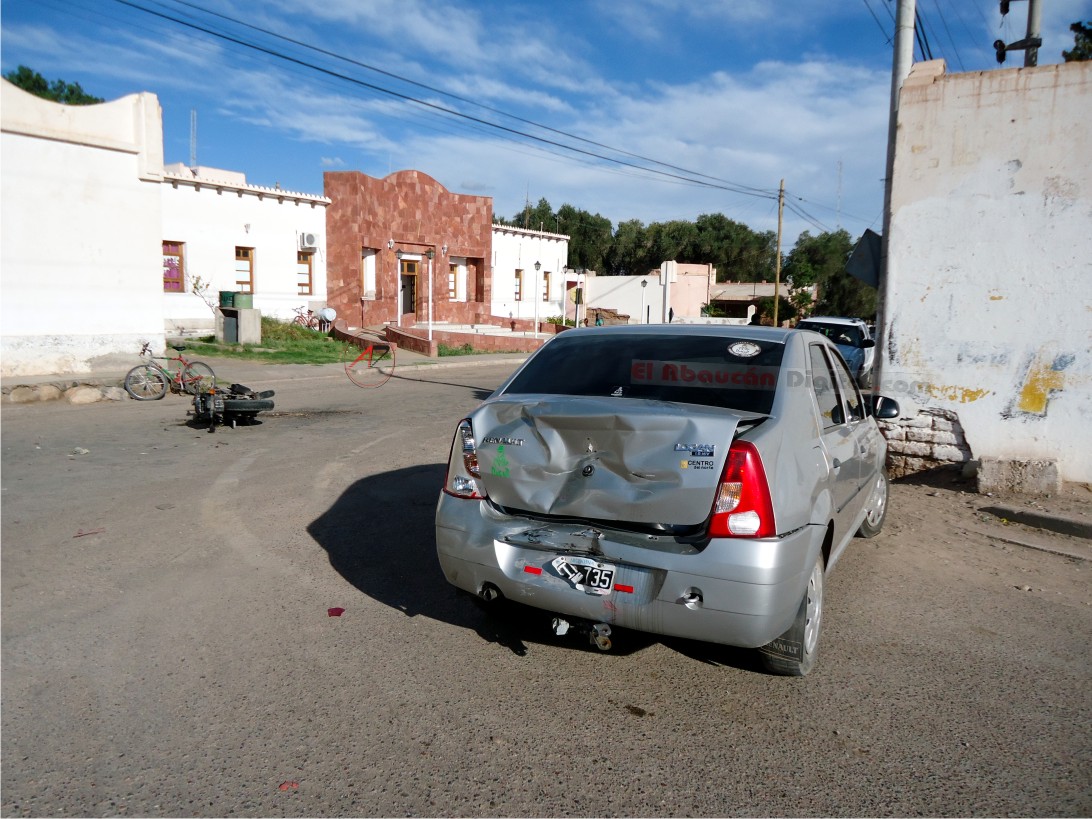 En el lugar, una motocicleta Motomel 110cc., conducido por Walter Coronel (20) colisionó con un automóvil Fiat Duna (LWY-363), conducido por Pablo Sebastián Valdez (26).