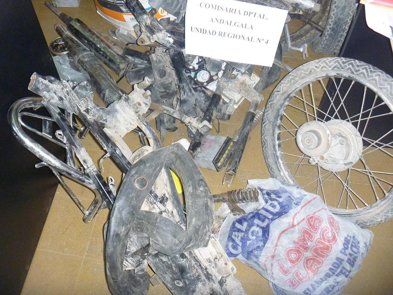 En la calle San Juan, entre Córdoba y Tucumán del Distrito Huachaschi, en un domicilio propiedad de una familia de apellido Aibar, los investigadores encontraron enterrado en el fondo de la vivienda el motor de una motocicleta marca Kymco 110 cc., propiedad de un hombre de apellido Álvarez, la que había sido denunciada como sustraída hace quince días, cuando el propietario la había dejado estacionada frente a la Escuela Provincial Nº 995, como así también se procedió al secuestro de distintas moto partes.