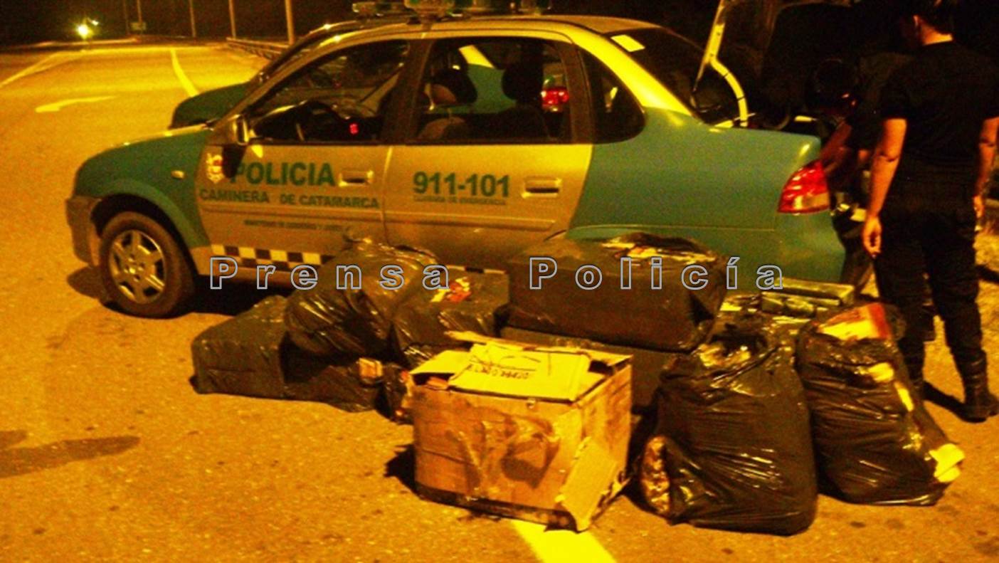 Los efectivos policiales se encontraban ubicados sobre ruta 38 a la altura de la localidad de La Bajada, departamento Paclín, cuando demoraron un vehículo tipo furgón Fiat, modelo Doblo, (MAJ-321) conducido por Esteban Yancovich (45), acompañado por Teresa Llano (45) y un menor de edad, todos oriundos de la provincia de San Juan.