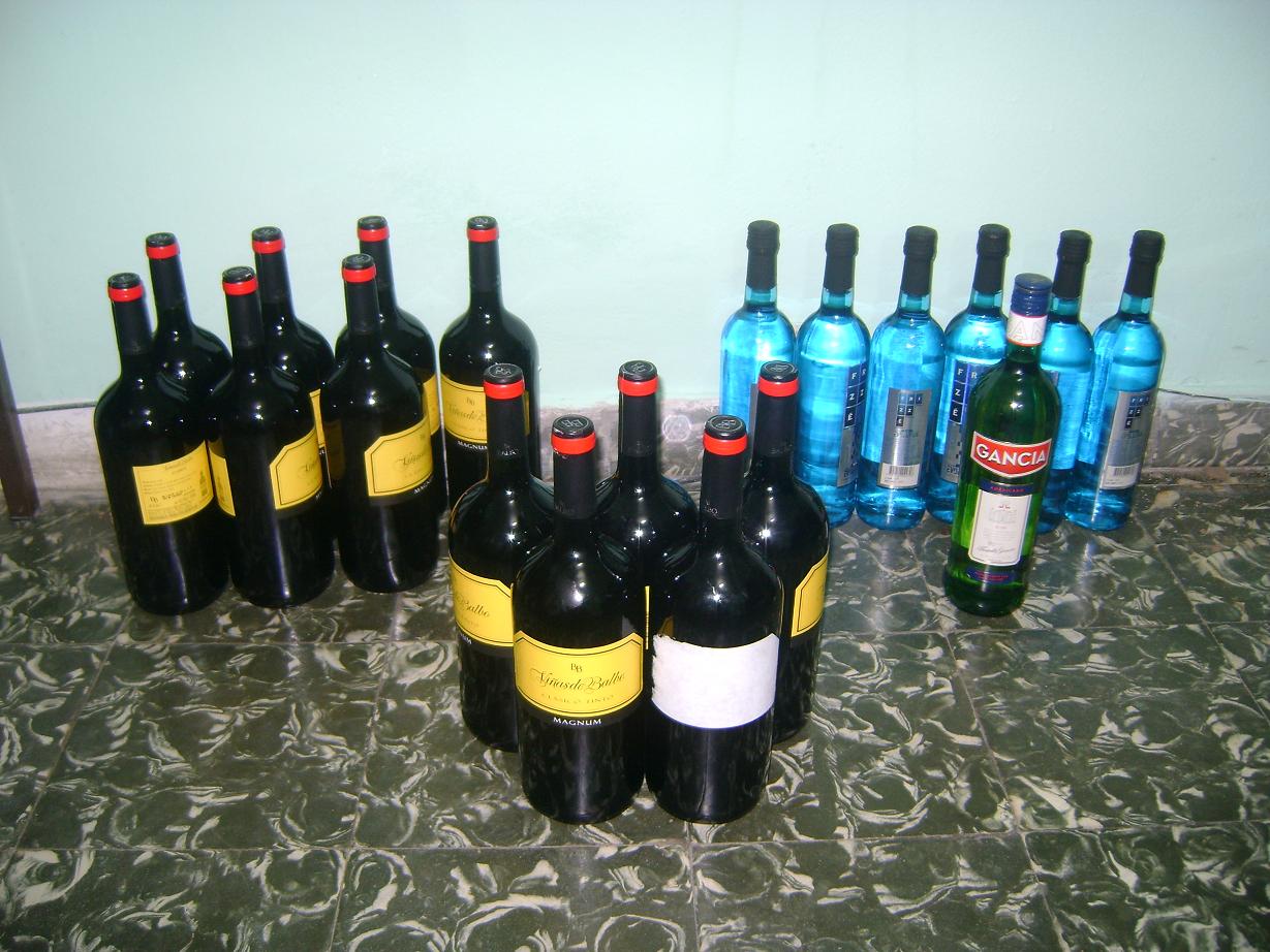 Las botellas de vinos y otras bebidas blancas, eran transportadas en diferentes vehículos particulares que se dirigían hacia la villa veraniega de El Rodeo, con motivo de los festejos estudiantiles.