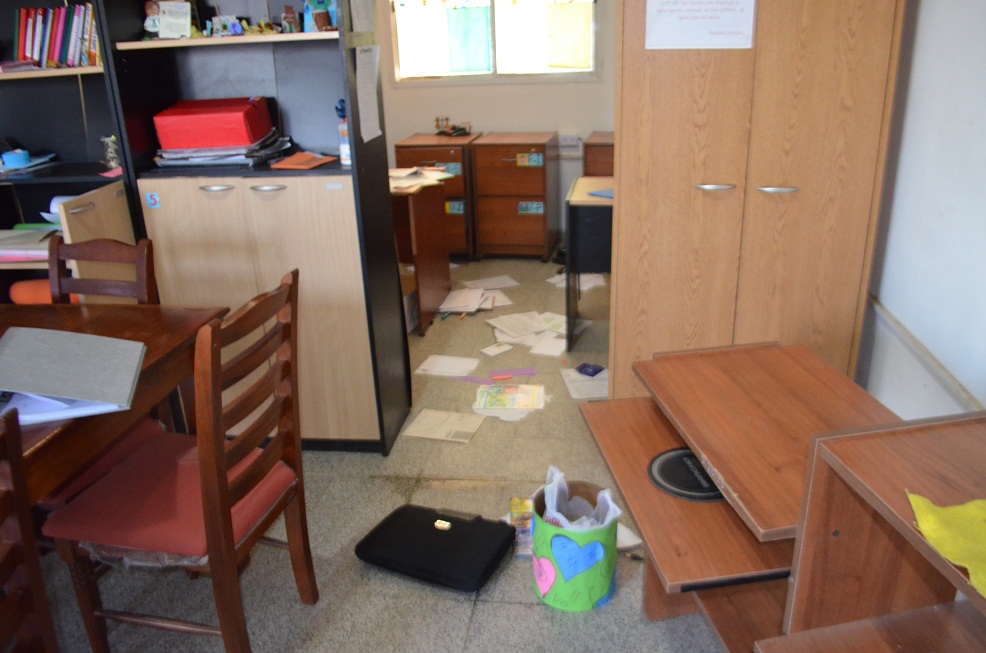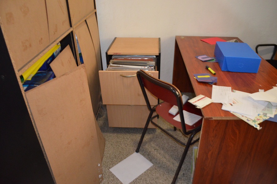 En este sector también destruyeron la documentación de los docentes referida a proyectos educativos. Asimismo ingresaron en la cocina donde arrancaron el tubo de gas, una pava y olla grande, aunque estas fueron dejadas abandonadas en los fondos de la escuela.