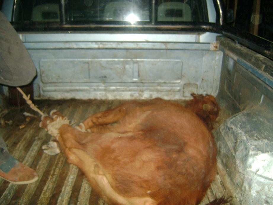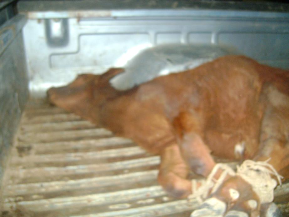 Estos sujetos, transportaban un ternero orejano de aproximadamente 90 kilogramos en la caja del vehículo, sin la documentación que acreditara su legítima propiedad y procedencia.