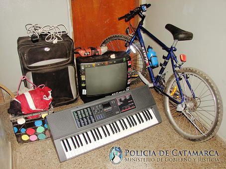 Al observar la presencia policial, el sujeto emprendió la fuga e ingresó a un domicilio del Loteo Mazzuco donde finalmente fue aprehendido y el personal policial encontró una bicicleta Saseta rodado 21, un televisor color 21” Telefunken, un órgano marca Casio y una amoladora, que había sustraído del domicilio antes mencionado.