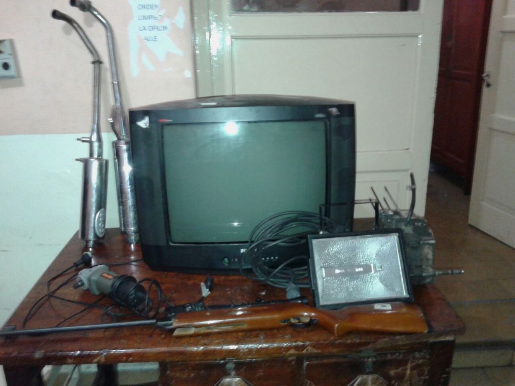 De los domicilios, los investigadores secuestraron: un teléfono celular marca Samsung, de color negro, un rifle de aire comprimido, un televisor 20” marca Philips, una amoladora marca Strike, un reflector de 1.000 w., con alargador, un motor de motocicleta 110 cc., con la numeración limada, y dos caños de escape de motocicleta, los cuales estarían vinculados a diferentes hechos delictivos de la zona. Todos los elementos, fueron trasladados a la dependencia policial, donde quedaron a disposición de la Justicia interviniente.