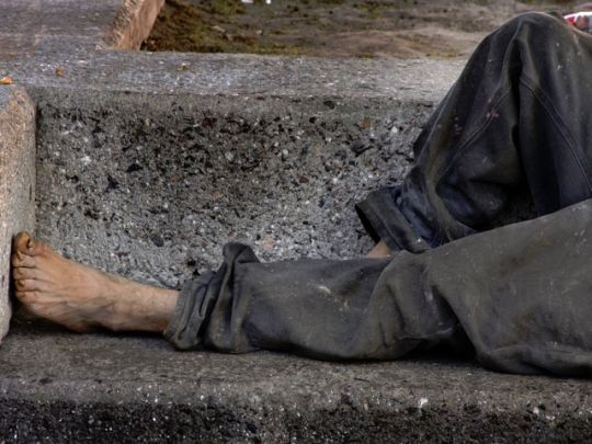 indigente que vive debajo de un árbol.
