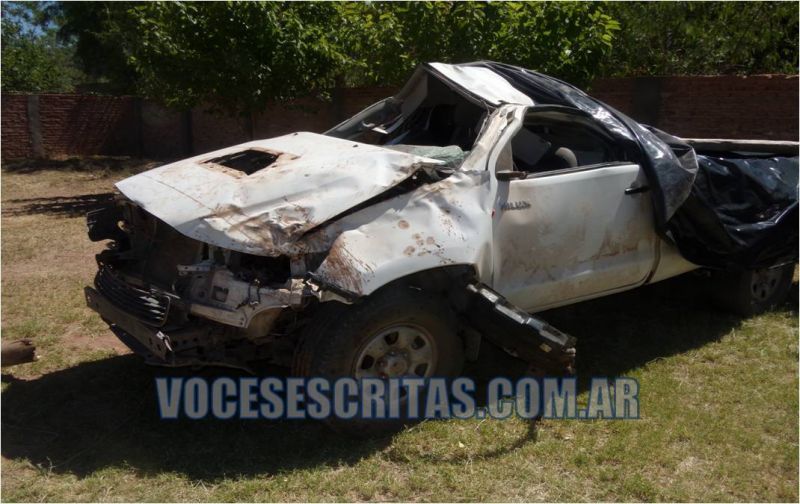 Según las primeras pericias, la camioneta habría sufrió un reventón de un neumático trasero izquierdo lo que provocó el vuelco del rodado.