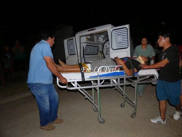 A las 22:30 asistieron la policía y la ambulancia por requerimiento de los vecinos, ya que el conductor de la moto de 110 cc impactó de frente contra un Peugeot 504 color rojo dominio XEI 495 al mando de un hombre mayor de edad de apellido Santillán.