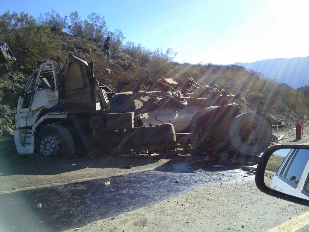 En el lugar, un camión cisterna Cargo 1722, que transportaba combustible con destino a la ciudad de Tinogasta, por razones que se tratan de establecer, terminó volcando a un costado de la ruta.