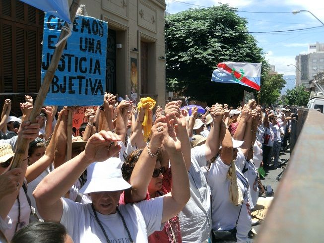 Ricardo Javier Ocampo, tal su verdadero nombre, salió de tribunales por calle Junin, para evitar así el contacto con la gran cantidad de seguidores que estaban instalados con pancartas y cánticos de apoyo, por calle San Martín.