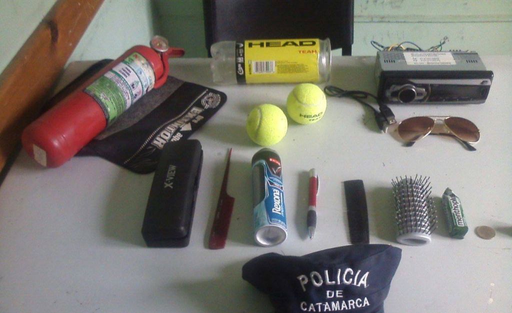 encontraron una bolsa que contenía en su interior un matafuego, un estéreo, el