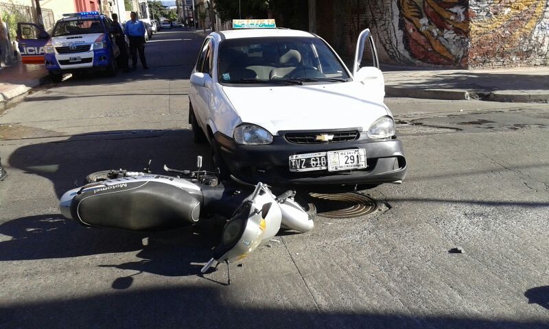 intersección de las calles Ayacucho y Chacabuco, un remis Chevrolet Corsa