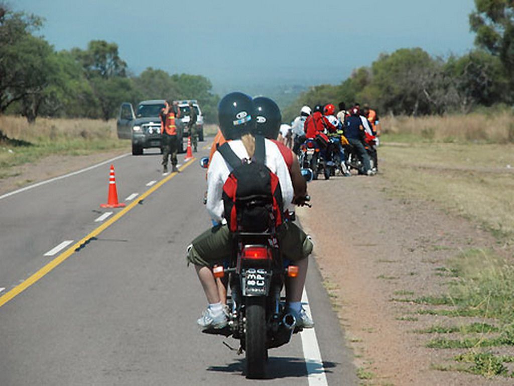 opuesta venían ocho peregrinos en motos Honda CG Titanio que se dirigían hacia