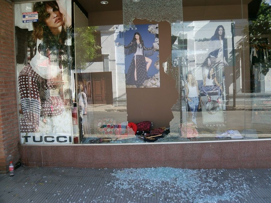 delincuentes rompieron las vidrieras de dos comercios ubicados en pleno centro,