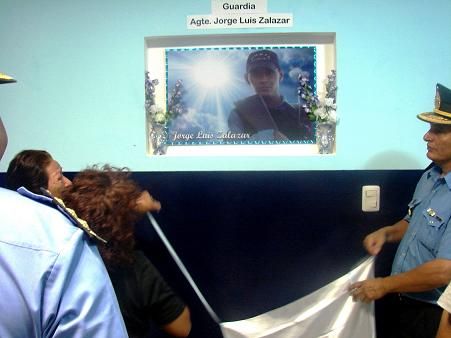 fallecido "Agente Jorge Luis Zalazar” a la Sala de Guardia de la Seccional, a