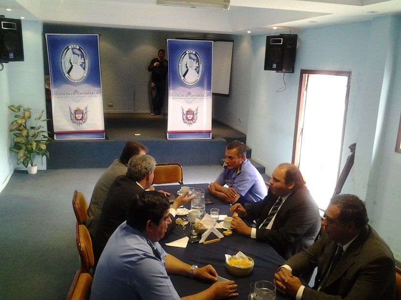 En la mañana de hoy, en la Escuela Superior de la Policía se llevó a cabo una reunión entre autoridades gubernamentales y policiales de Catamarca y La Rioja. El encuentro fue encabezado por el ministro de Gobierno, Gustavo Saadi, el secretario de Seguridad, Juan Pablo Morales, el Jefe de Policía, Julio César Gutiérrez, el subjefe de Policía y el Director de Drogas Peligrosas.