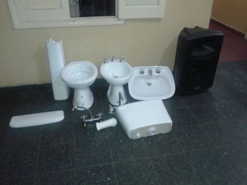 parlante con potencia y un juego completo de sanitarios para baño con grifería