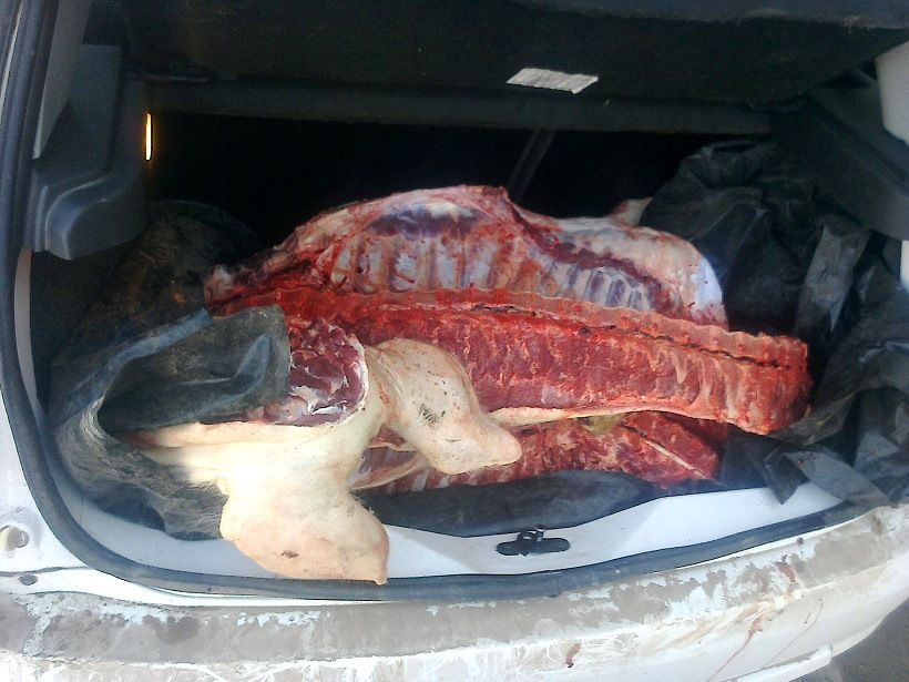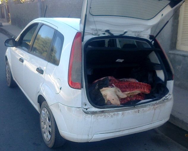 Al efectuar la requisa del vehículo, los efectivos observaron que en el baúl transportaba un animal porcino faenado, de aproximadamente unos 150 Kg., sin las condiciones de higiene y salubridad correspondientes, por lo que dieron participación al personal de la Comisaría de Huillapima, quienes labraron las actuaciones de rigor.