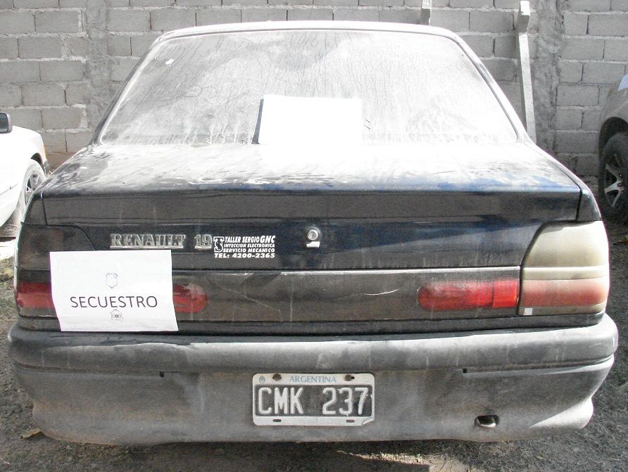 Allí secuestraron un automóvil Renault 19 (CMK-237), de color azul, que poseía el número de motor limado. Mientras llevaban a cabo el procedimiento, observaron que había en el interior del lugar un motor perteneciente a otro automóvil Renault 19, que también tenía limado el número, por lo que también procedieron a secuestrarlo.