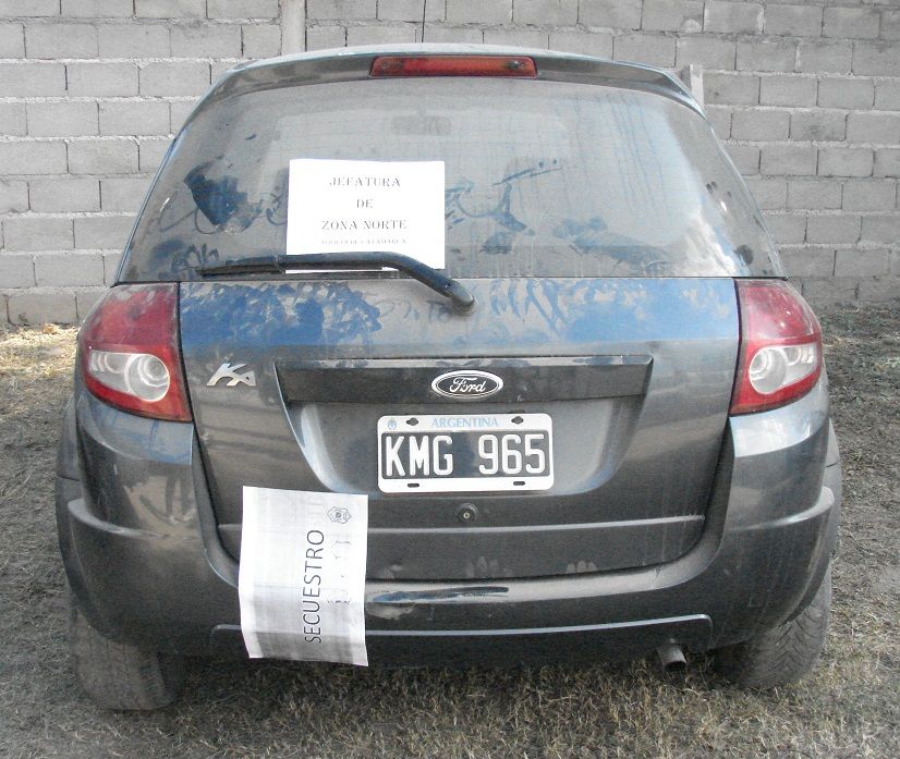 Minutos más tarde, el personal interviniente procedió al secuestro de un automóvil Ford KA que poseía la chapa patente KMG-965, de color gris oscuro y, efectivos de la División Sustracción de Automotores, luego de realizar las tareas de su especialidad, pudieron establecer que ese dominio no coincidía con el automóvil registrado.